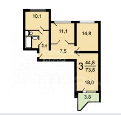 73,8 м², 3-комн., 4/17 этаж