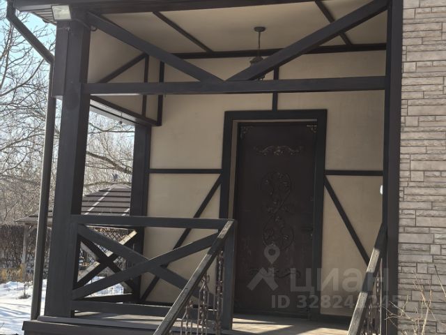 2 этажа, террасы наверху и внизу, высота потолков - 3 метра, хороший погреб. Реальная площадь продаваемой половины 80 м2. У соседей за стенкой подведен газ. С/у на улице.