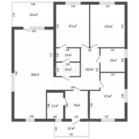 Удобная планировка, 2 выхода (центральный и на участок), выход из гостиной. Площадь дома 121,2 кв.м. В доме 3 спальни по 14,5+15,8+15,8 кв.м., кухня-гостиная 42,2 кв.м., с/у, котельная, коридор.