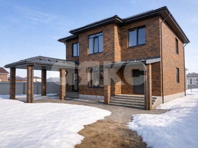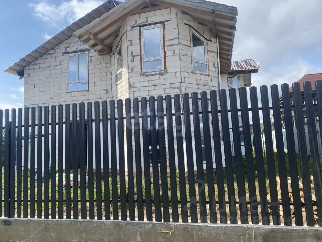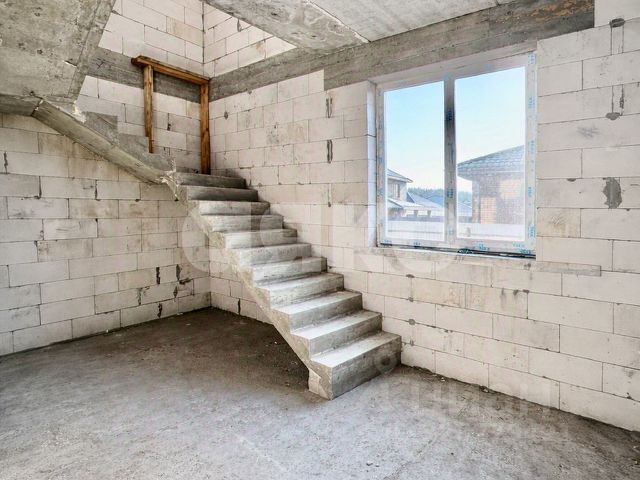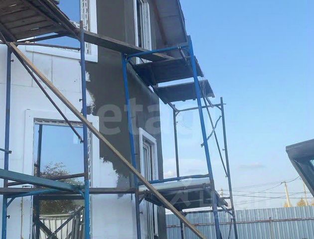 2 этажа, террасы наверху и внизу, высота потолков - 3 метра, хороший погреб. Реальная площадь продаваемой половины 80 м2. У соседей за стенкой подведен газ. С/у на улице.