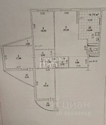 Планировка: жилая площадь — 83.1 м², кухня — 14.6 м². Высота потолков — 3.1 метра