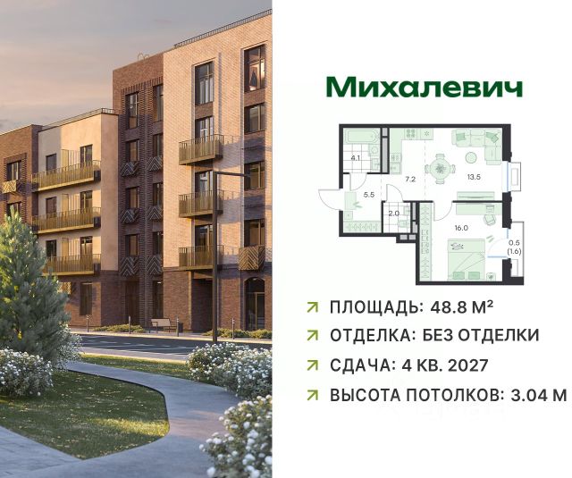 ЖК Михалевич — малоэтажный жилой комплекс в стиле современного лофта, где современная архитектура сочетается с природной гармонией. Квартал расположен в центре города Раменское, всего в 10 минутах пешком от станции МЦД-3 "Ипподром", с развитой транспортной и социальной инфраструктурой. Проект вдохновлен лучшими традициями городской застройки: натуральные материалы, декоративная объемная кладка, панорамные окна, авторская архитектурная подсветка фасадов создают атмосферу уюта и добрососедства. Пространство дворов спроектировано без машин, с зонами для игр, спорта и отдыха. В благоустройстве сохранены вековые деревья и планируется создание "лесных гостиных". Планировки — от компактных студий до просторных четырехкомнатных квартир, включая варианты с патио, вторым уровнем и террасами на кровле, гардеробными и мастер-спальнями. В квартирах предусмотрены французские балкон и лоджии, а потолки от 3 м. Архитектура и стиль: • Малоэтажные корпуса (4 этажа) в стиле современного лофта • Натуральные материалы отделки и декоративная кладка • Панорамное остекление и архитектурная подсветка фасадов • Приватность и атмосфера добрососедства Инфраструктура и сервисы: • Пешеходный бульвар и велодорожки по периметру квартала • Муниципальный детский сад (185 мест) • Коммерческие помещения, постоматы маркетплейсов, кафе, аптеки • Площадки для спорта, игр детей разного возраста • Зоны для релакса и спокойного отдыха • Прогулочные "лесные гостиные" с вековыми деревьями Дворовое пространство: • Закрытая территория, доступ только для жителей • Дворы без машин • Безбарьерная среда • Всесезонное озеленение и декоративные ландшафтные фигуры • Беседки, качели, зоны отдыха для всей семьи Транспортная доступность На общественном транспорте: • 10 мин пешком до МЦД-3 "Ипподром" • 45 мин до м. Выхино • 1 час 15 мин до Казанского вокзала На автомобиле: • 5 мин до Раменского ПКиО • 30 мин до аэропорта Жуковский • Удобный выезд на основные трассы Входные группы и безопасность • Лифты со спуском на -1 этаж, сквозные входы • Колясочные, гостевые санузлы и лапомойки для питомцев • Келлеры на -1 этаже • Система "умный дом" и видеонаблюдение по периметру и внутри зданий • Управление домом через мобильное приложение Дом Планировки и отделка: • 30 видов планировок: студии, евроформаты, квартиры с патио, террасами на кровле, мастер-спальнями, двухуровневые квартиры • Потолки от 3 м, панорамные окна • Выбор отделки: без отделки, предчистовая отделка, чистовая отделка Квартира первичка в Раменском.
