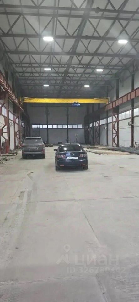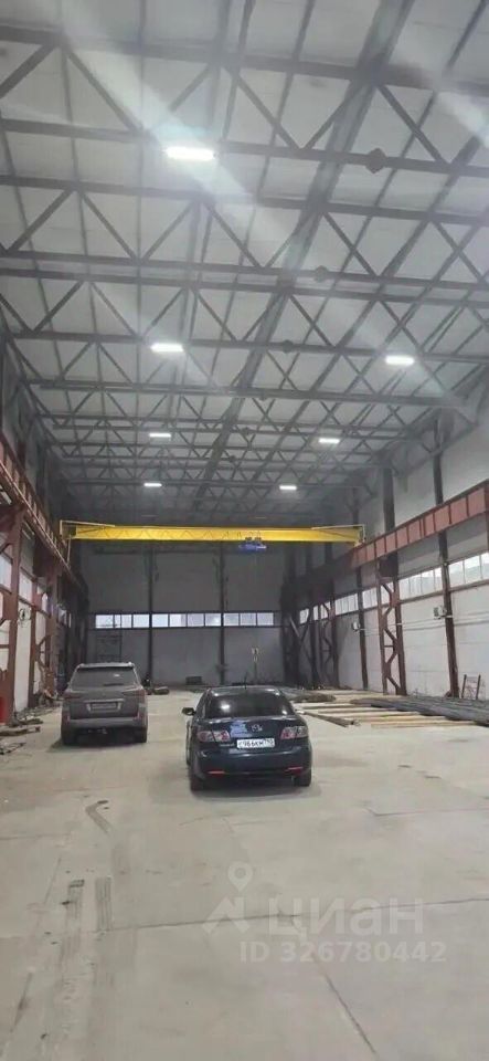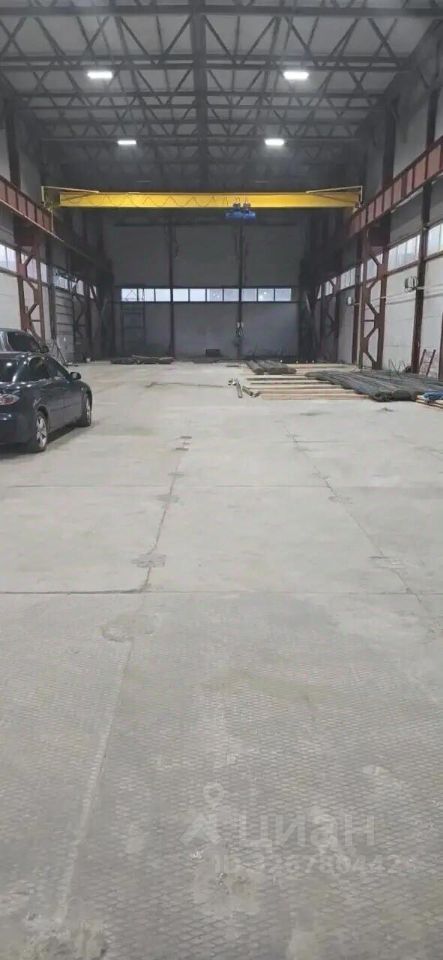Арт. 129938896 Сдается в аренду производственно-складское помещение, площадью 1440 кв.м., пол бетонные плиты, высота 8 метров, ворота в ноль, кран-балка на 10 тонн, высота подъема крюка 7 метров от уровня пола. Отопление будет к следующей зиме. Канализация септик, вода скважина. Фура может заехать внутрь помещения. Удобный подъезд.