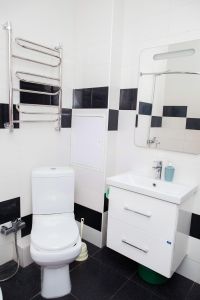 Также вся необходимая бытовая техника холодильник, плита, микроволновка, стиральная машина, телевизор, утюг - удобно для длительного проживания и деловых поездок.