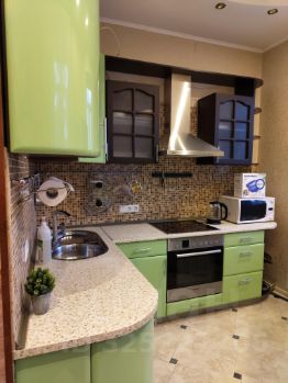 Есть огромный шкаф-купе, посудомоечная, стиральная машина, СВЧ, духовка, новый унитаз, двухспальная кровать, беговая дорожка на балконе, на кухне диван раскладывается в дополнительное спальное место.