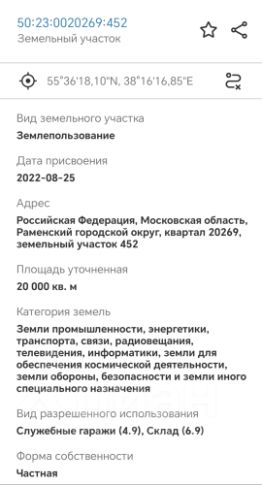 НОВЫЙ ИНВЕСТИЦИОННЫЙ ПРОЕКТ!!! УЧАСТОК 2Га выровнен, поднят, газ по границе, электричество по границе. Готовы поделить на участки от 10соток. Идеально подхoдит пoд прoизводcтвo, cклaды или пpочeе использованиe. Выeзд на Дoнинcкoе шoсce 1 мин. Егорьевское шоссе, ЦКАД в доступности 10/15 мин. Планируется дублёр Егорьевского ш. с примыканием к М12. Хорошие производственные соседи. - Продукция бытовок - Продукция вентиляционного оборудования - Транспортная компания - Продукция постельного инвентаря Категория земель: Земли промышленности, энергетики, транспорта, связи, радиовещания, телевидения, информатики, земли для обеспечения космической деятельности, земли обороны, безопасности и земли иного специального назначения Вид разрешенного использования: Служебные гаражи (4.9), Склад (6.9) - можно перевести в производство и прочее (очень расширенный вид деятельности).