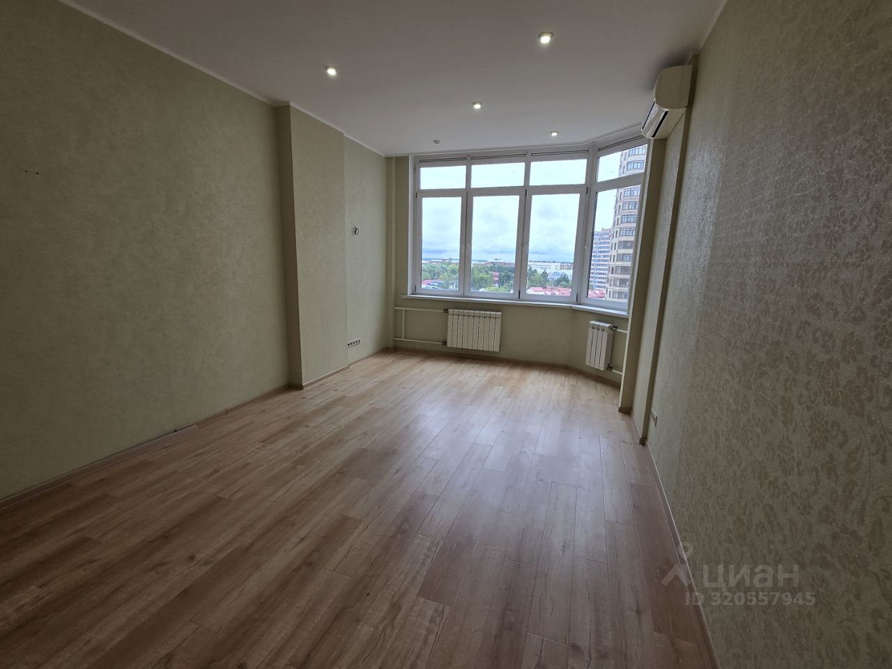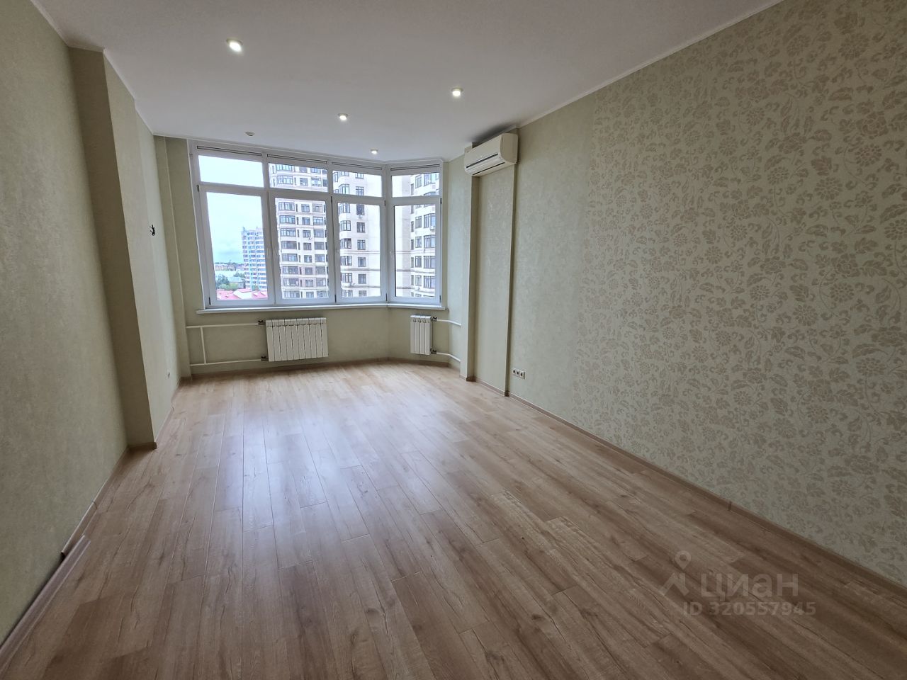 Большую, 22,1 кв.м., комнату с панорамными окнами и эркером, путем зонирования можно разделить на уютную спальню и гостиную.