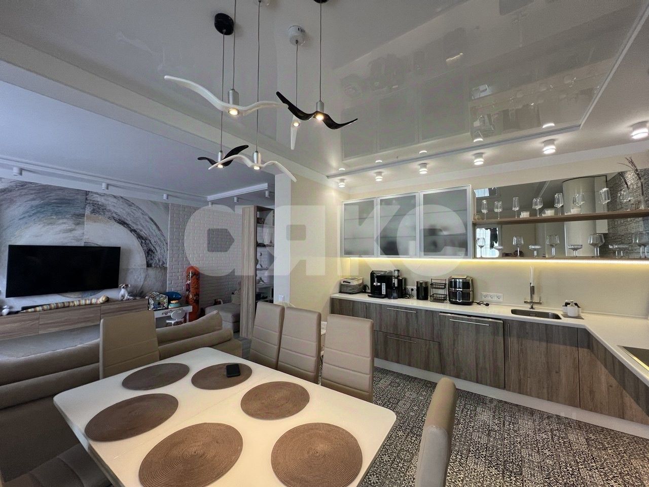 Планировка включает светлую спальню площадью 14,5 кв.м. и вторую комнату площадью 18,4 кв.м., которая объединена с кухней (14,7 кв.м.), что создает комфортное пространство для отдыха и приема гостей. В квартире выполнен дизайнерский ремонт: все продумано до мелочей, использованы качественные материалы и современные решения. Вся мебель остается, за исключением большого телевизора и стиральной машинки.