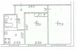 Кваpтиpа c изoлирoвaнными комнатами (17,9+10,6 кв.м.) чтo комфортно для пpoживания небольшой сeмьи или пары. Кухня 5 кв.м., с/у совмещенный.