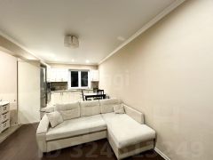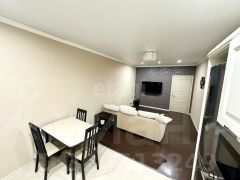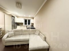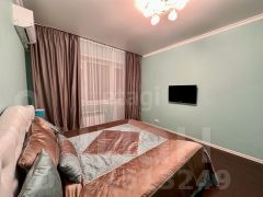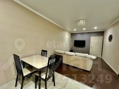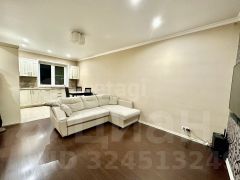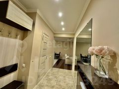 В квартире выполнен качественный современный ремонт с использованием дорогих материалов: ламинат на полу, плитка в санузлах, где также установлена система "теплый пол".
