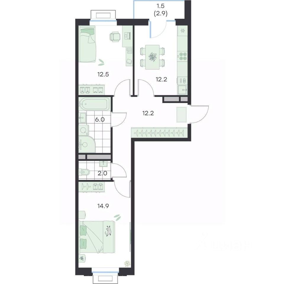 Общая площадь61,3 м²
