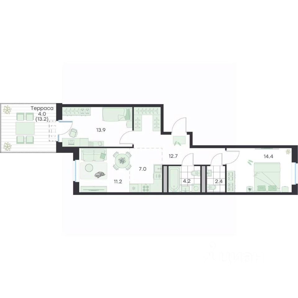 Общая площадь69,8 м²