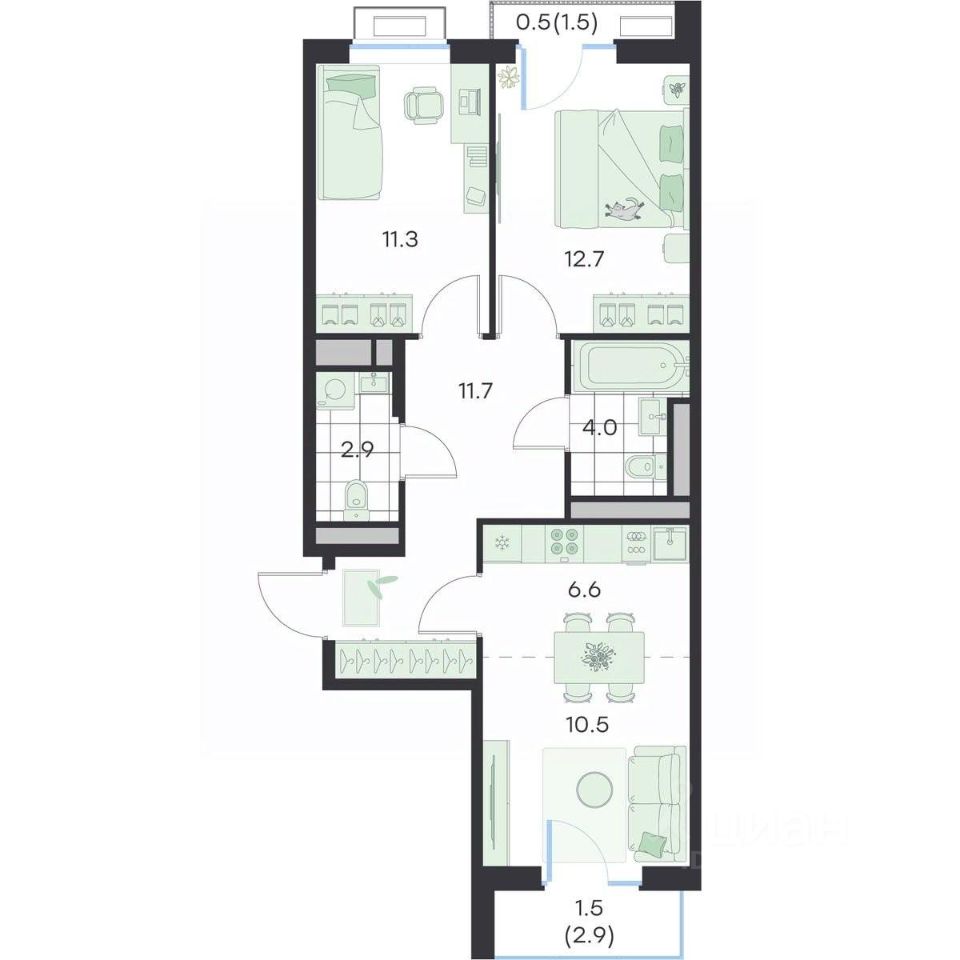 Жилая площадь56,7 м²
