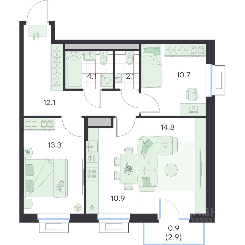 Общая площадь68,9 м²