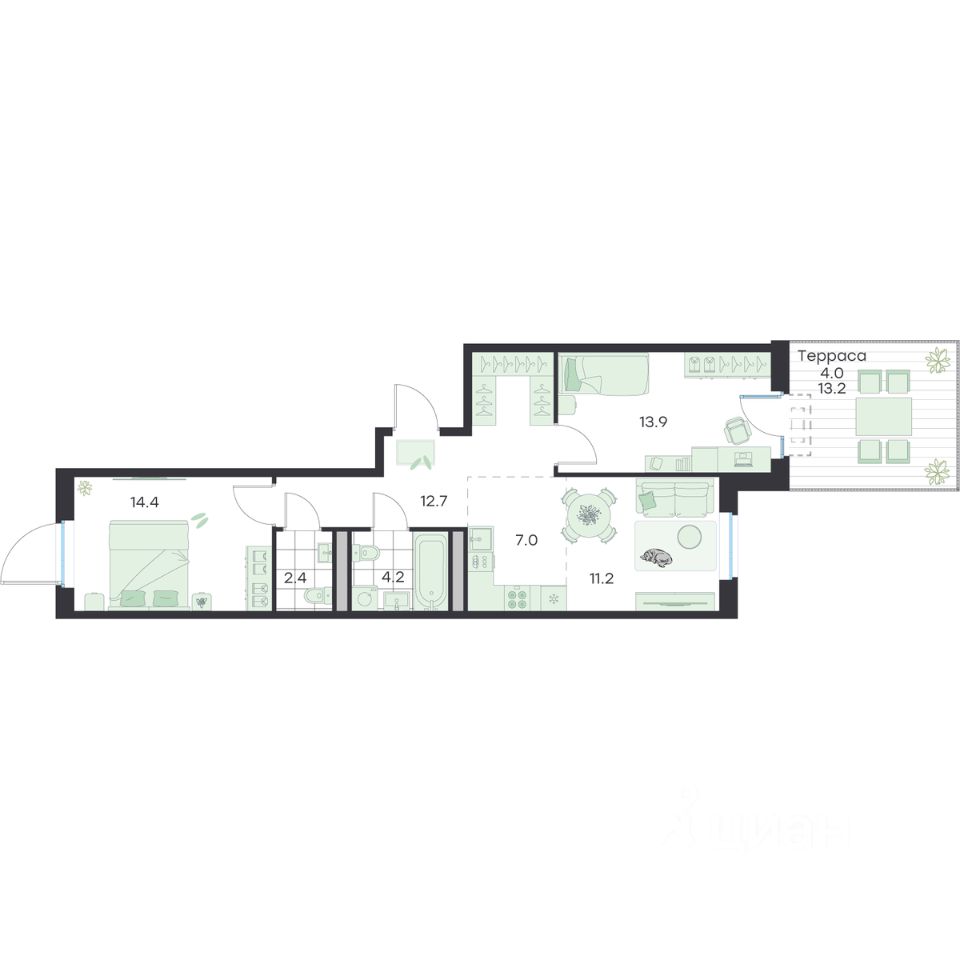 Общая площадь69,8 м²