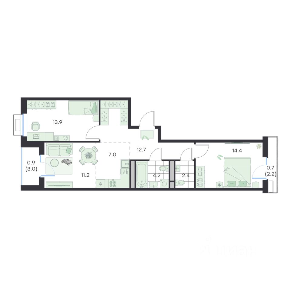 Жилая площадь63 м²