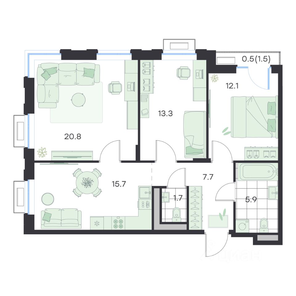 Жилая площадь72,7 м²