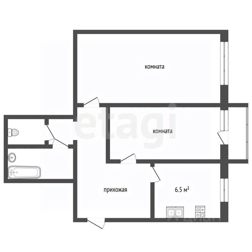 Площадь: 48.9 кв. м (22 + 14 + кухня 6.5)