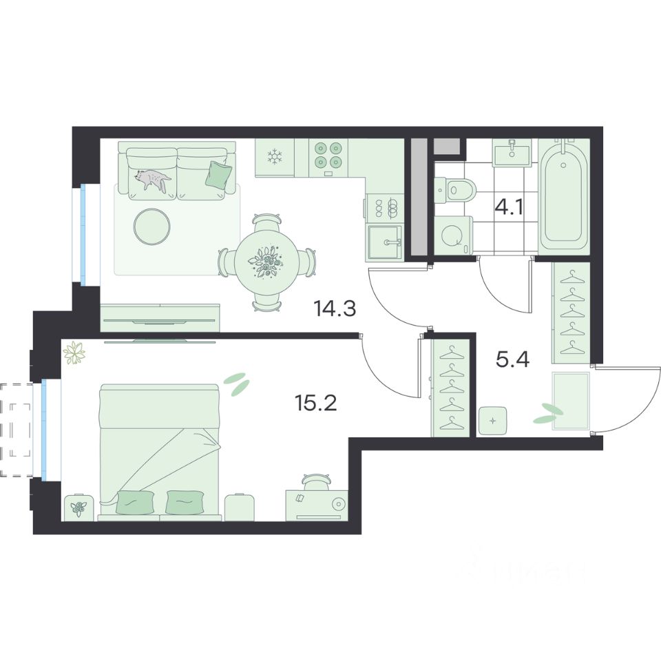 Жилая площадь15,2 м²