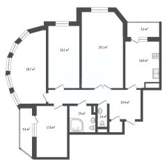 Квартира имеет рациональную и комфортную планировку для жизни: просторная гостиная площадью 29 м², отдельная кухня 14 м2, с выходом на застекленную лоджию, три полноценные спальни: 20,7 м², 18,1 м² и 17,8 м².