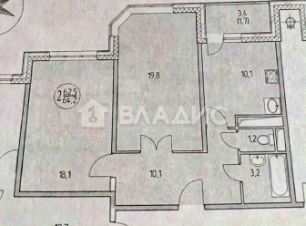 Общая площадь квартиры составляет 63,1 кв. м, из которых 37,9 кв. м — жилая площадь. Две изолированные комнаты (19,8 кв. м и 18,1 кв. м) и кухня площадью 10,1 кв. м создают удобное пространство для жизни. Квартира расположена не у угла дома, что обеспечивает дополнительную тишину и комфорт.