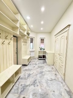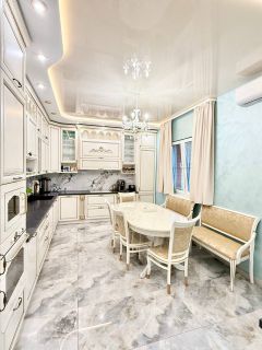 В доме выполнен хороший ремонт с использованием качественных и дорогих материалов. Четыре полноценные спальни, большая кухня -гостинная, отдельная гардеробная, на каждом этаже санузел, есть рабочий кабинет.