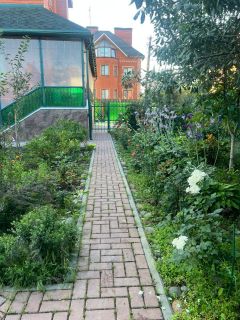 Участок ровный, правильной формы, огорожен забором с откатными воротами. Придомовая территория отделана брусчаткой. Территория участка - мечта садовода: плодовые деревья и кустарники соседствуют с клумбами цветов и грядками с овощами. Все ухоженно и обработано!