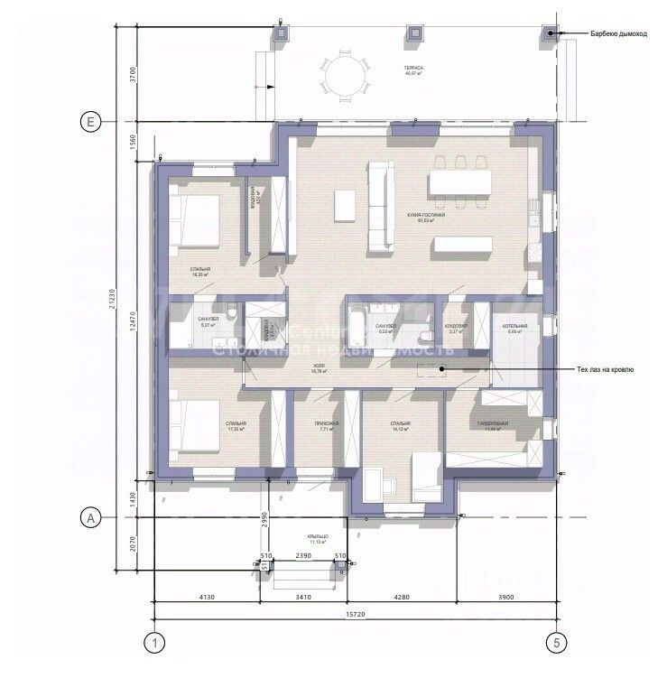 Площадь — 218 м², дом спроектирован из современных материалов (газоблок/паратерм), возможно изменение проекта на каркасный вариант. Уже выполнен надёжный фундамент на монолитной плите с закладными элементами. Есть фотографии всех этапов изготовления фундамента, подтверждающие высокое качество строительных работ. Внутренняя структура дома включает кухню-гостиную площадью 55,9 м², три просторные комнаты, включая хозяйскую спальню, комфортную террасу 29 м², раздельный санузел и ванную комнату, удобное пространство для хранения вещей (гардероб), прихожую, холл и функциональную котельную.
