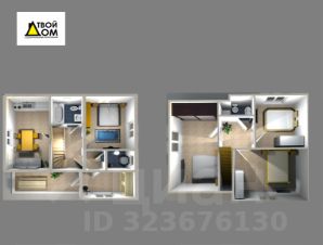 - 2-й этаж: 3 комнаты 13/12/9 м2, холл-гостиная 5 м2, санузел 3 м2 (унитаз, раковина)