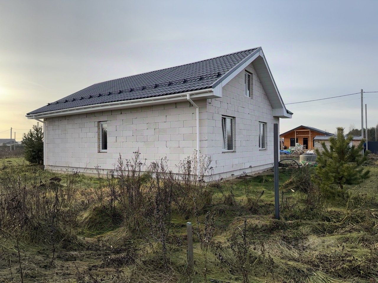 Коммуникации: электричество 15кВт, скважина 6 колец (4,5 метра). Газ по границе поселка.