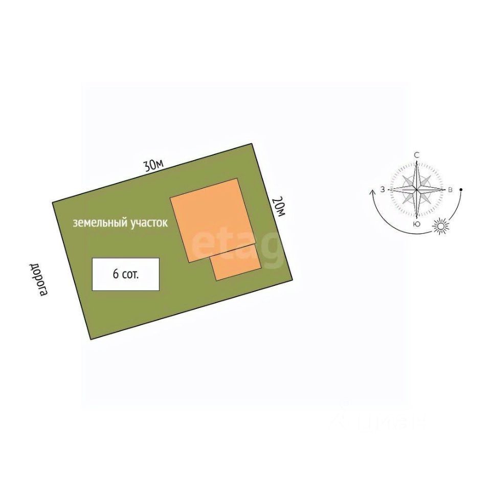 Размер участка в основном 20х30 м, забора нет.