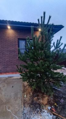 На участке высажены молодые сосны и достаточно места для бани, беседки и бассейна.