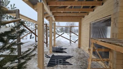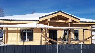 Конструктивные особенности: Монолитный железобетонный плитный фундамент. Наружные и внутренние стены клееный профилированный брус сечением 200х170 мм. Крыша многоскатная с покрытием из металлочерепицы по деревянным несущим конструкциям изготовленных из древесины камерной сушки, водостоки, снего-держатели.