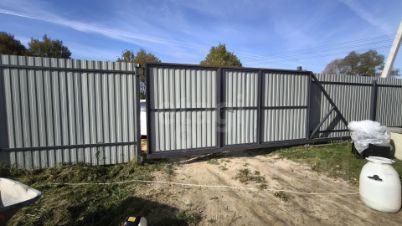 Территория полностью благоустроена: установлен надежный забор с удобными откатными воротами, а заезд для автомобиля отсыпан, обеспечивая комфортное парковочное место.
