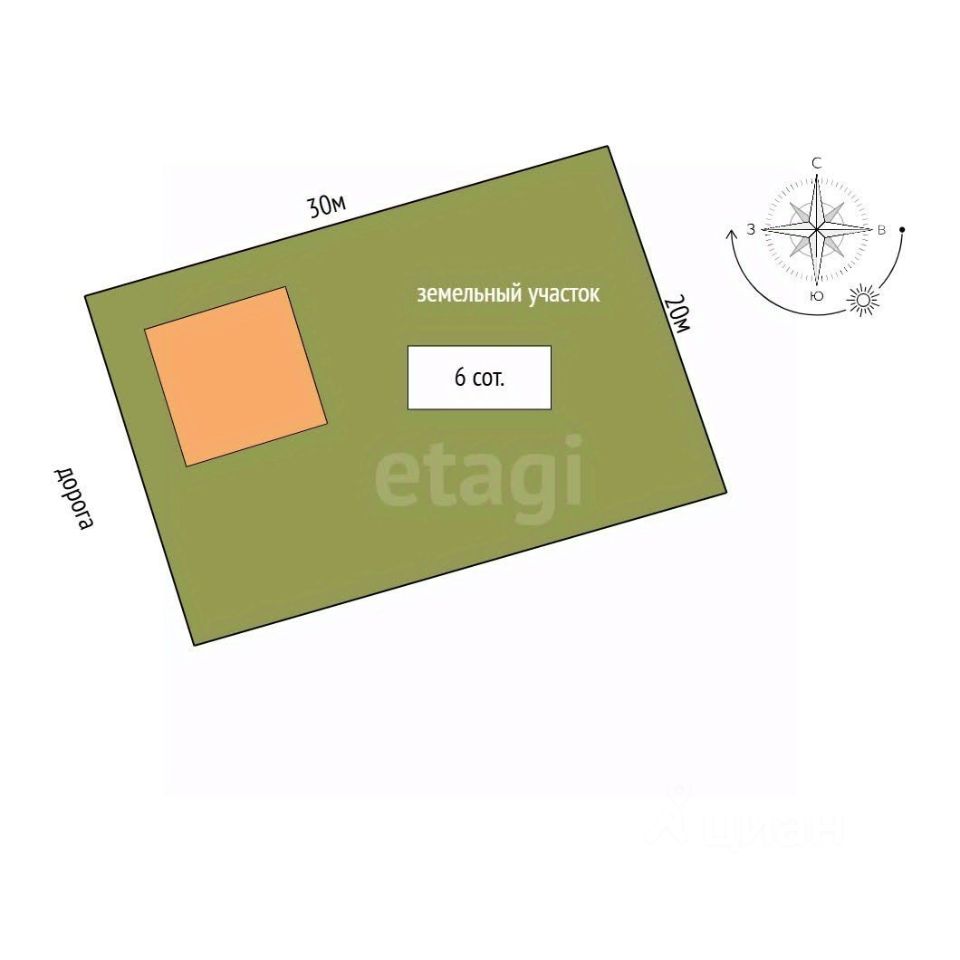 Участок земли ровный и обустроенный занимает 6 соток. Прямоугольной формы, он будет огорожен забором. Въезд и подъезд к дому удобен: асфальтированная дорога ведущая прямо к воротам сделает ваш путь всегда легким и приятным.