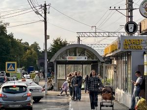 - Активный пешеходный и автомобильный поток: пассажирская ЖД платформа и остановка общественно...